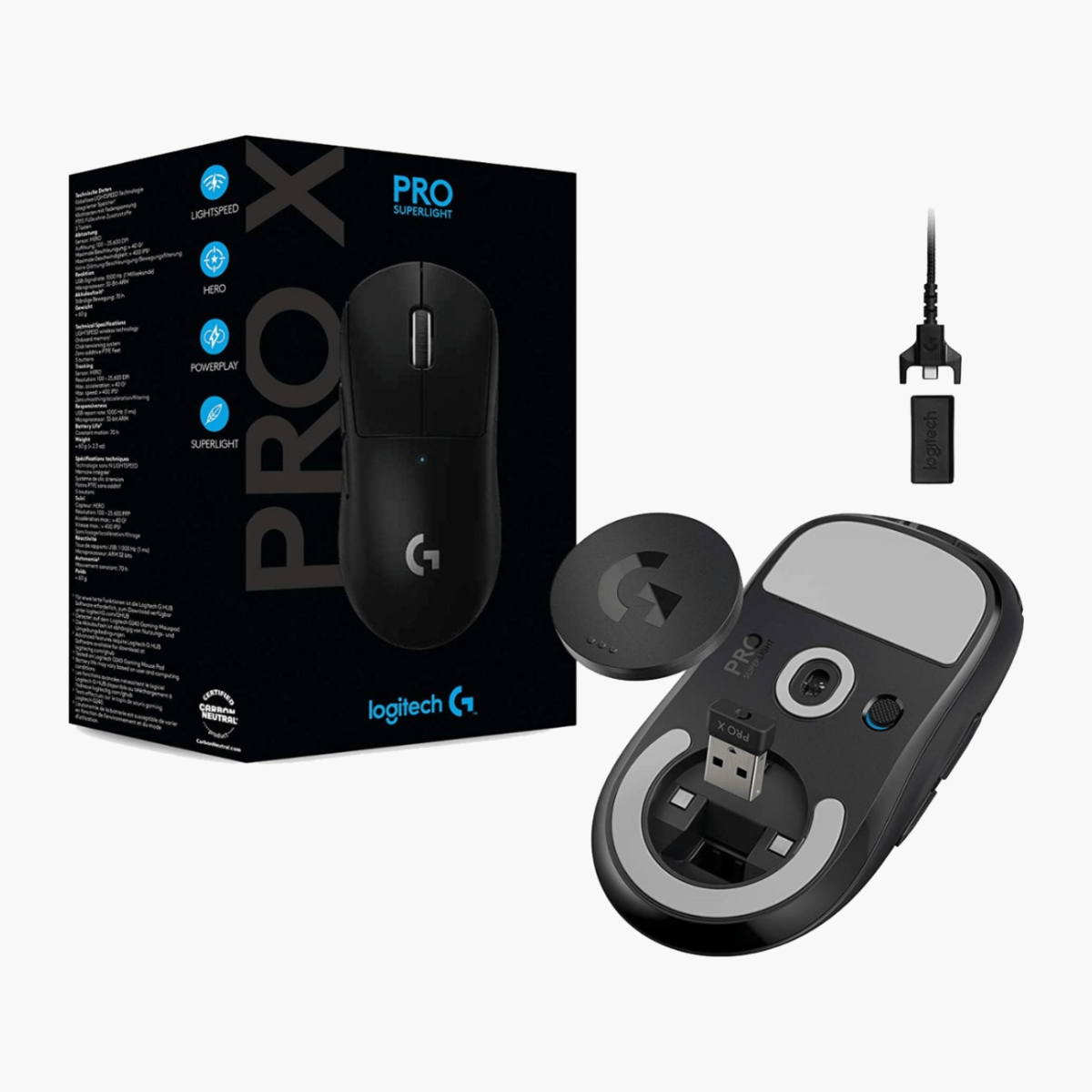 PRO X SUPERLIGHT cumple con los más altos estándares de sostenibilidad. Es un producto certificado totalmente neutro en carbono. Mediante la compra de energía renovable y las compensaciones de carbono, nuestras instalaciones de fabricación han neutralizado totalmente sus emisiones de carbono.