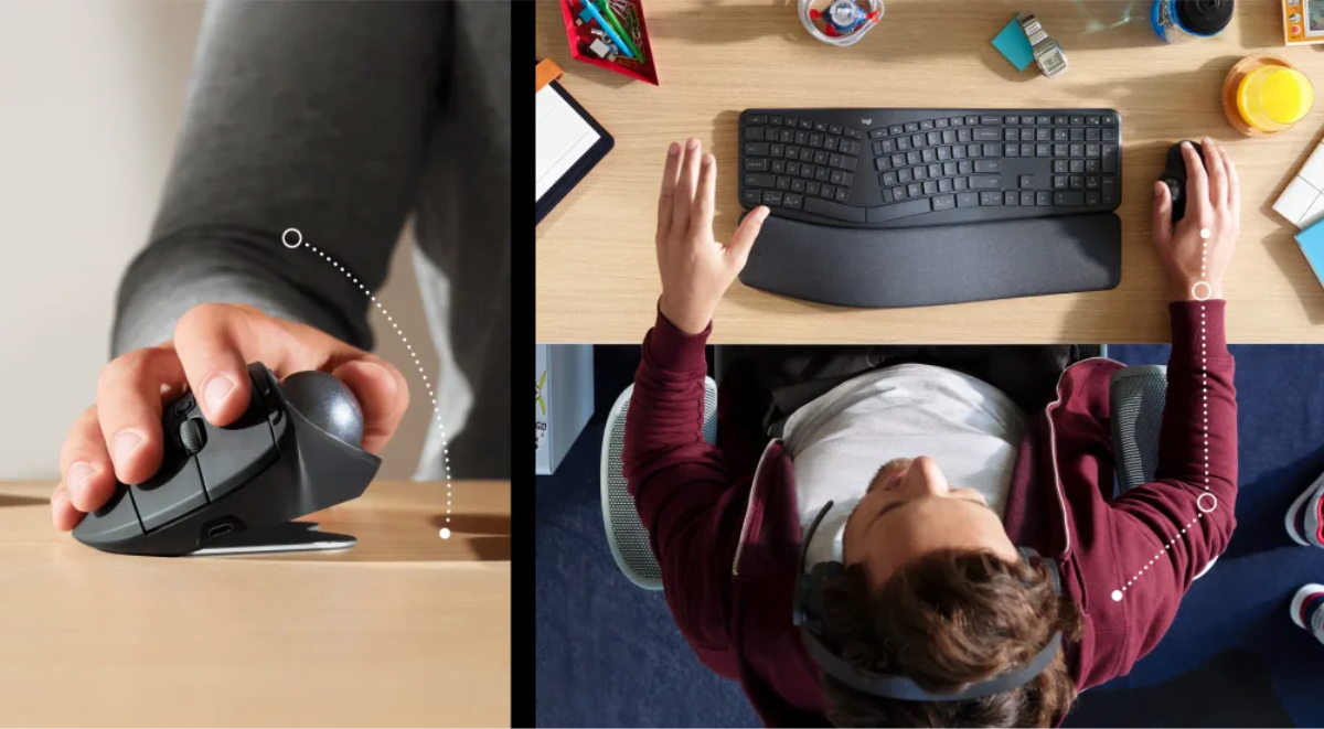 Sin necesidad de mover la mano para desplazar el cursor, se puede minimizar el esfuerzo y maximizar el desempeño. Comparado con un mouse convencional, el trackball produce un 20% menos de fatiga muscular en la mano, la muñeca y el antebrazo. Y la exclusiva inclinación ajustable de MX ERGO permite elegir un ángulo de 0 o 20° grados y mejorar al instante la postura de la muñeca y el antebrazo. Trabaja todo el día con más comodidad, facilidad y concentración en las tareas pendientes.