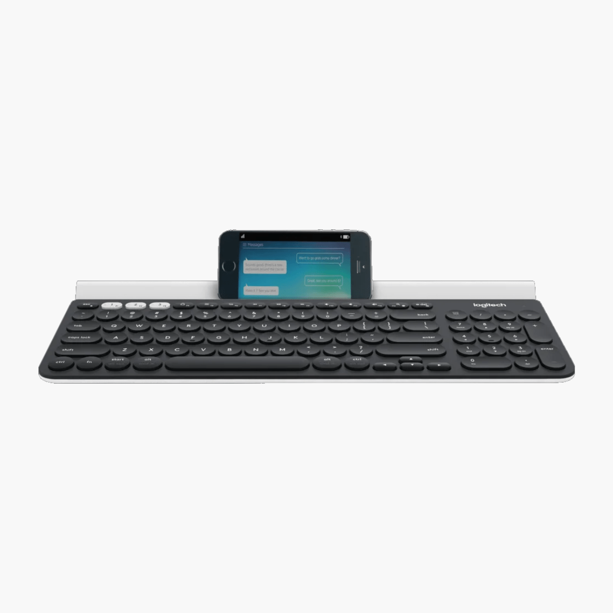 Todas las teclas que necesitas en un formato compacto que es ideal para personas de constitución ligera o espacios de trabajo reducidos. Con una sección numérica integrada puedes introducir datos sin esforzar tanto el brazo y con más espacio para el ratón. El soporte de goma integrado es apto para diversos dispositivos, desde smartphones a iPad de 12”, que puedes colocar en un cómodo ángulo de visión.